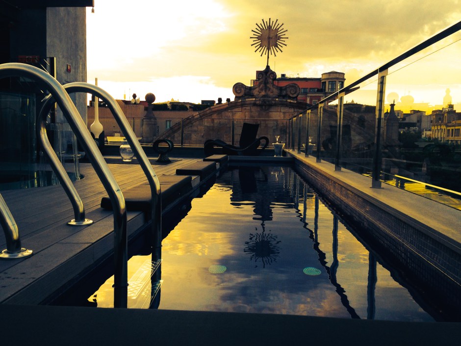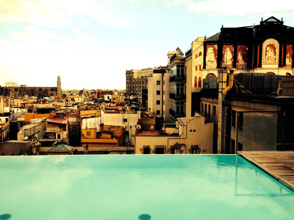 Voin lämpimästi suositella hotelleja joissa yövyimme. Hotel Bagues, Hotel DO ja Grand Hotel Central. Hotel Bagues on tyylikäs museohotelli. Sen isokokoiseen sviittiin kuuluu oma uima-allas parvekkeella. Parvekkeen alapuolella kulkee Barcelonan pääkatu La Rambla. Hotelli on kuusikerroksinen joten sen katolta näkee aika pitkälle barcelonan kattojen ylle.