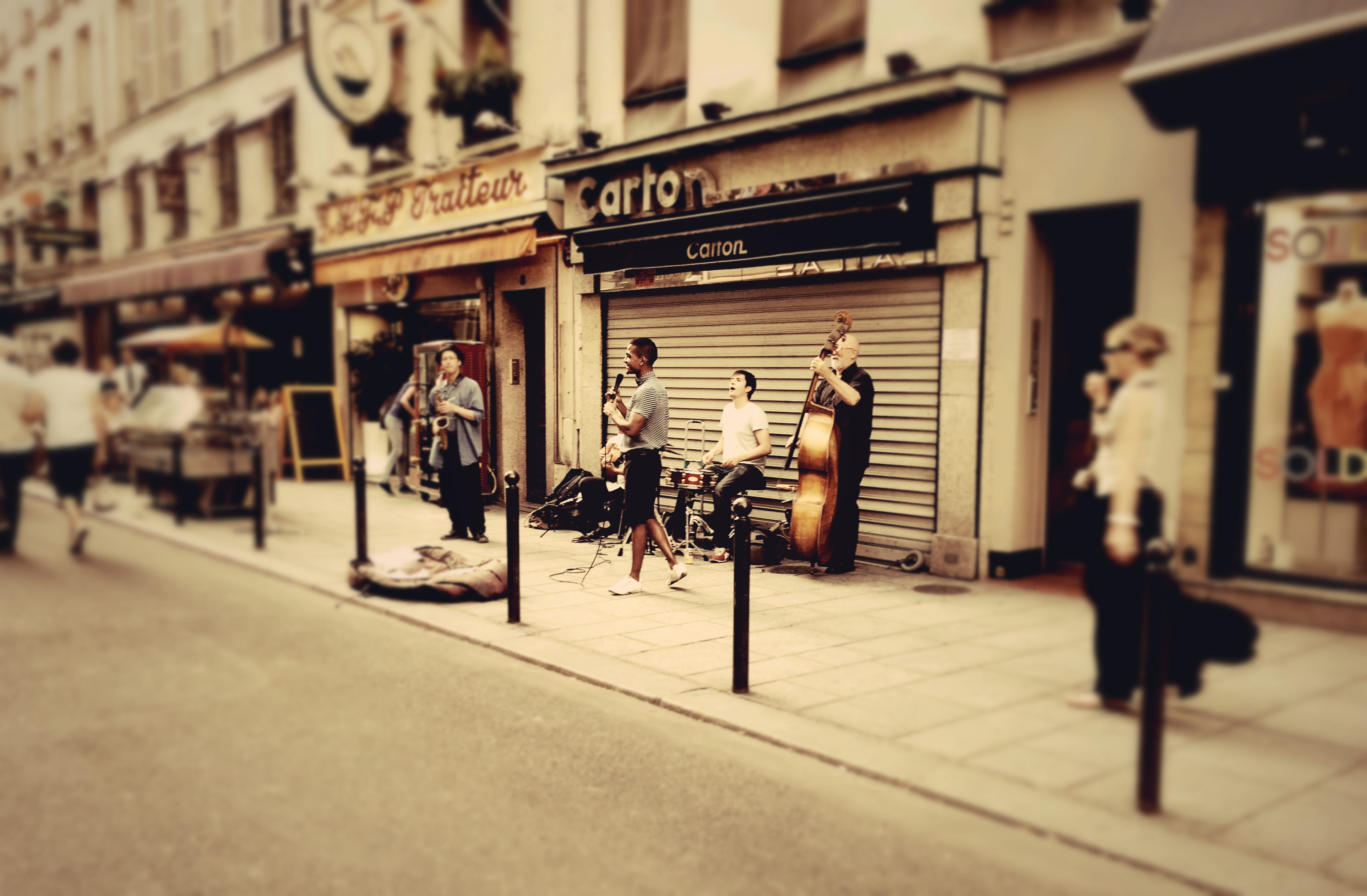 Katselin bändejä. Olin kovalla vaivalla saanut puhuttua myös oman kitaran mukaan lentokoneeseen. Perille päästyäni ihmettelin miksei kukaan muu ole täällä soittamassa kitaraa kadulla, kuin minä. Myöhempinä iltoina selvisi että katusoittaminen ilman erillislupaa on Pariisissa kiellettyä. Jatkoin sillä viinillä sitten vaan.