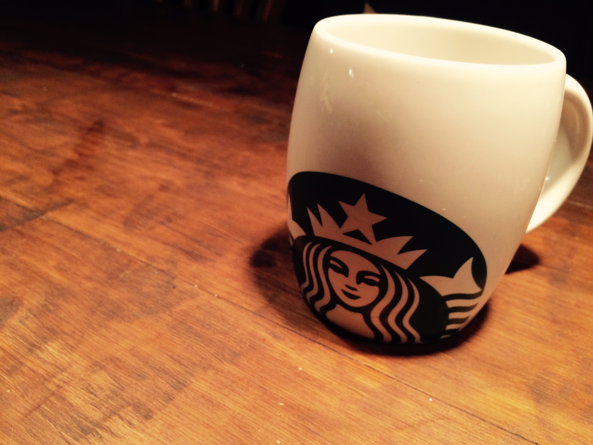 Olisin ottanut heistä kuvan, mutta minulla ei ollut puhelinta. Otin sitten kotona kuvan Starbucks-mukista.