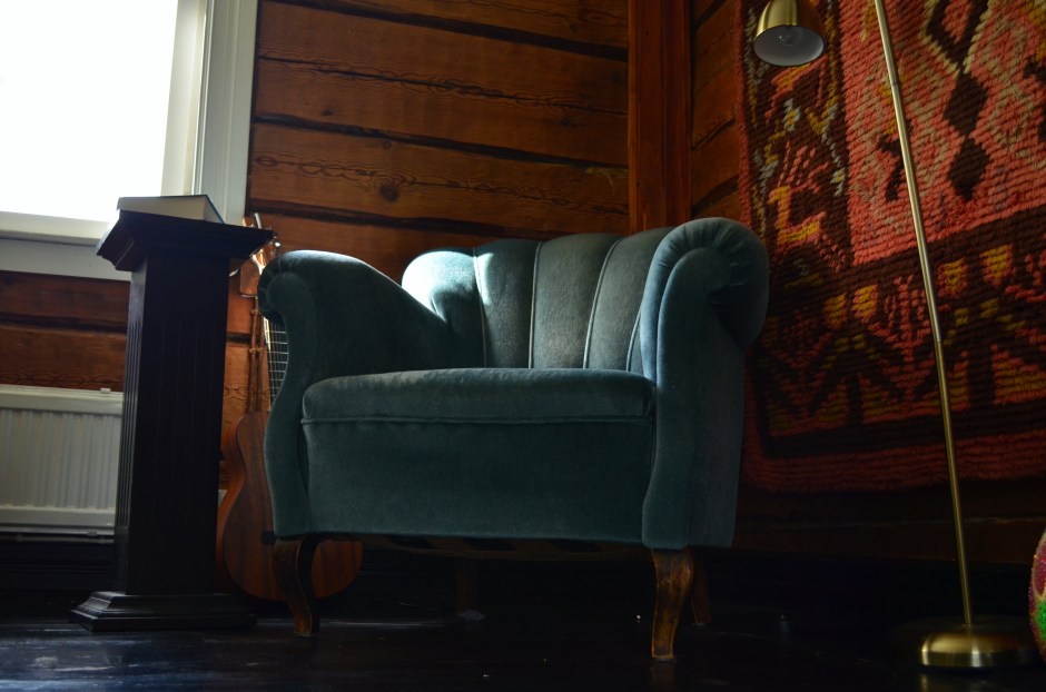 Vihreä nojatuoli kököttää nyt tuvan nurkassa kissan kynsittävänä. Se on saanut kaverikseen lampun ja kornerista on tullut ajan myötä sen tason lukunurkka että Innon Markokin olisi tyytyväinen. Muistan nuoruuden televisiosta pysyvästi sen, että käänsi mille kanavalle hyvänsä, siellä oli sisustusarkkitehti Marko Paananen luomassa jokakodin skandinaavista beige-sävyistä lukunurkkaa upeilla tekstuureilla ja struktuureilla.