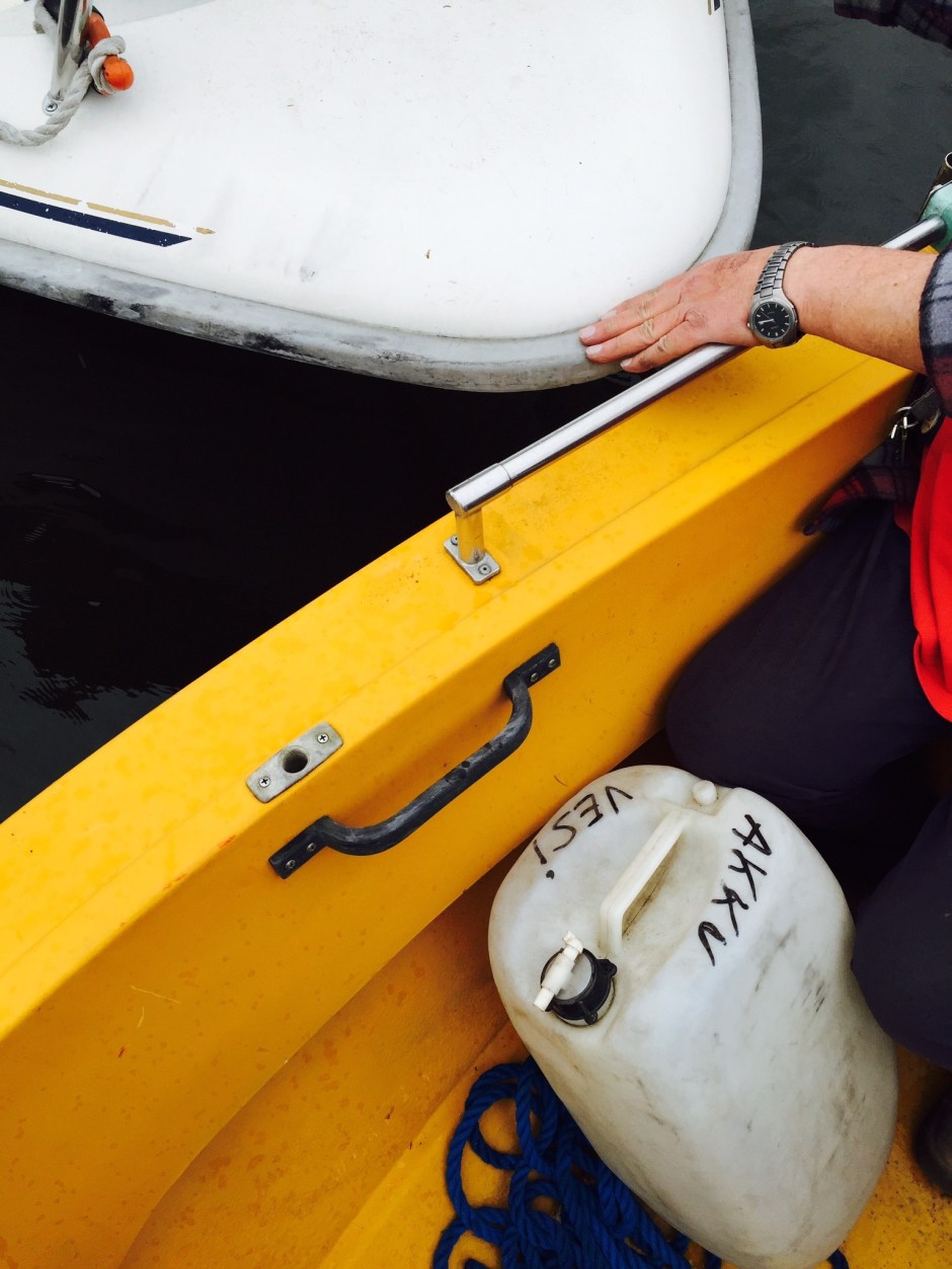 Nenäliinat eivät täysin riittäneet ja keltainen vene sai takaosaansa punaisen raidoituksen. Kotimatkalla tihkusade jatkoi nipistelyään, mutta kapteenin veren tahrimilta kasvoilta paistoi hymy. Kyllä kesä on kiva. Ja veneily.