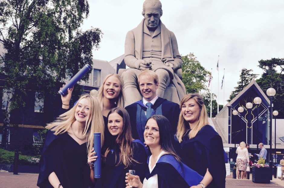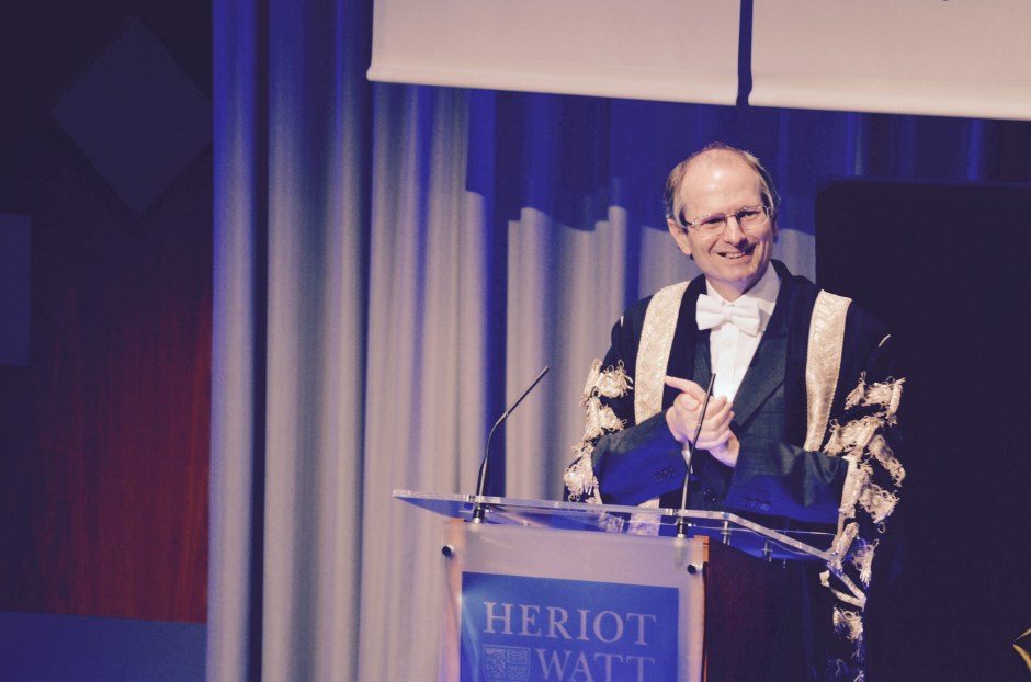 Tilaisuus yliopistolla alkoi ja päättyi juhlallisesti kampuksen papin, kappalaisen, rukoukseen. Kansleri, rehtori, professorit ja kunniavieraat kävelivät musiikin tahdissa kaavut päällä sisään. Kuultiin mahtipontisia, tunteellisia ja hauskojakin puheita sekä hienoja a capella-esityksiä. Opiskelijat kävelivät aplodien raikuessa kättelemään Dr Robert Buchania, joka kopautti heitä lakilla päälaelle. Juhla oli hyvin järjestetty ja koko lysti oli cocktailtilaisuuksineen ohi parissa tunnissa.
