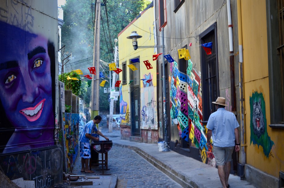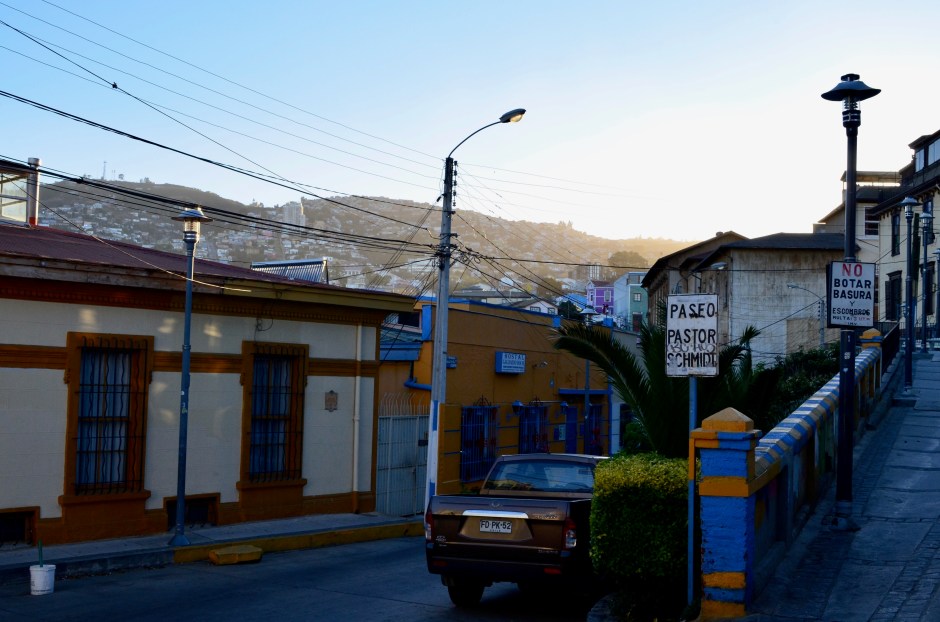 Valparaíso sijaitsee siis Chilen rannikolla, noin 120 kilometrin päässä maan pääkaupungista, Santiagosta luoteeseen. Se on sekä historiallisesti, että edelleen eteläisen Tyynenmeren tärkeimpiä satamia, Chilen toiseksi suurin metropoli mutta ennen kaikkea taiteellinen kulttuurikaupunki jossain hipin ja hipsterin välimaastossa.
