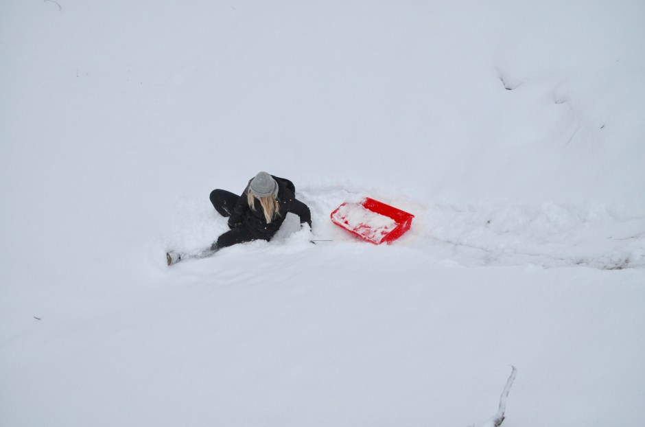 5. SORAMONTUN kyljet on liian jyrkkiä pulkkamäeksi. Isoimmat kivet valuvat kesän aikana jyrkänteen juureen ja ovat siellä lumen alla vastaanottamassa ajattelematonta pulkalla laskijaa. Me onneksi huomasimme ne ennen rysähdystä. Liukurilla laskeutuminen sen sijaan sujui ongelmitta. Oli kivaa vaikka kengät meni täyteen lunta.