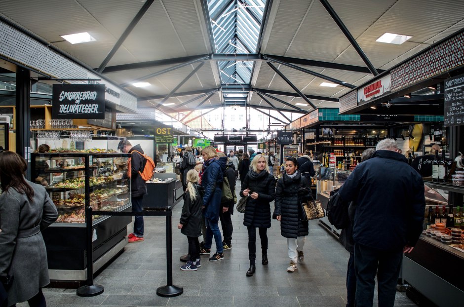 Aurinko paistoi lämpimästi, mutta tuuli oli yön aikana äitynyt jopa myrskyksi. Hengitys salpaantui puuskan voimasta heti, kun hotellin liukuovet avautuivat aamuiselle Hammerichsgadelle. Kauppahalli ei olisi kaukana, mutta kävely sinne olisi viheltävän vastatuulen takana. Syöksyimme kauluksista ja aurinkolaseista kiinni pitäen taksin takapenkille ja pyyhälsimme Torvehallerneen.
