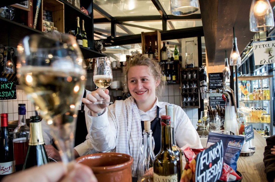 Kierrettyämme ja ihasteltuamme hetken aikaa hulppean näköisiä lihavitriineitä ja smörrebröd-akvaarioita, päätimme istuutua hetkeksi hypistelemään menua erään houkuttelevan kioskin tiskille.
