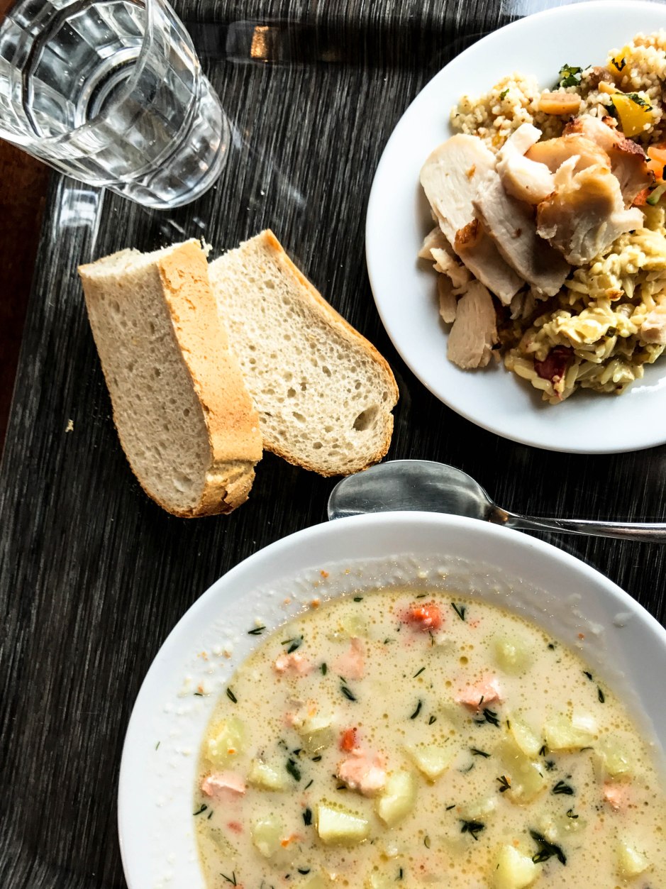 Hetken kuluttua lohikeitto tuotiin pöytään, kuten oltiin sovittu. Otin siitä Instagram-kuvan ja söin sen. Oli hyvää. Sitten menin kirjastoon kirjoittamaan pariksi tunniksi.