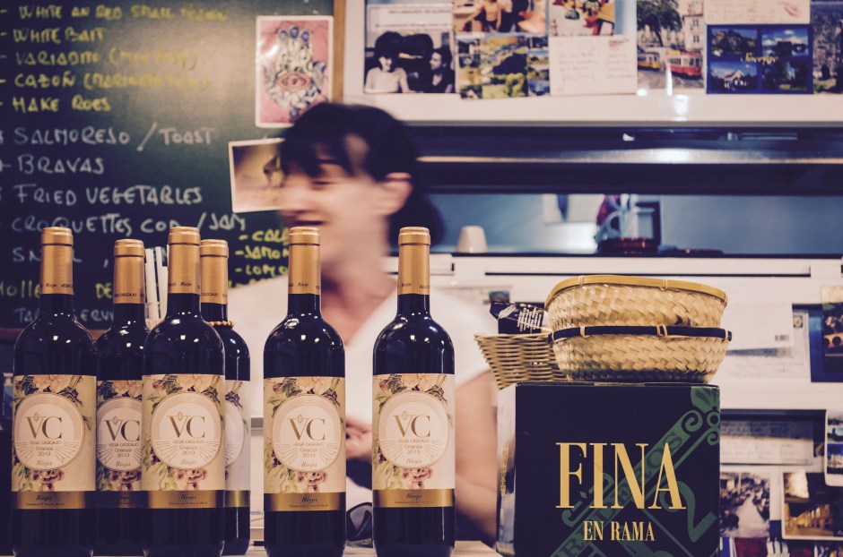 Mónika tuo pöytään uuden pullon Vega Cascajoa. Tänään ei ole kiire sulkea.