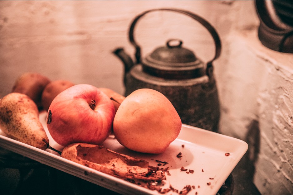 Kasa päärynöitä ja omenoita oli jäänyt leivinuunin päälle viikonloppuna. Jostain syystä päätin olla tekemättä niille mitään. Annoin niiden vaan olla.