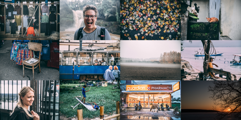 Tästä tulee mieleen Mustamäen tori. Loputtomat pinot huonolaatuisia vaatteita ja kömpelösti kopioituja CD-levyjä. Tunkkaiset takit ja tusinatuotteet menevät ilmeisesti edelleen Tallinnassa kaupaksi, sillä tämä syksyn reissulta bongattu halli vaikutti yllättävän suositulta. Hinnat olivat tosin paljon kalliimpia, kuin hyvinä Mustamäen torin aikoina.En ole kummoinen luontokuvaaja. Hyvän luontokuvan saamiseksi pitäisi mennä syvälle luontoon – tien piennar ei yleensä riitä. Tämän kuvan otin lokakuussa Rengossa. Huomasin hesaria lukiessa, että päivä valaistuu sumuisena ja lähdin auton kanssa kiertämään pikkuteitä. Olen tyytyväinen kuvaan vaikka se tuli muokattua silloiseen kuvasarjaan sopivaksi vaaleanpunaisella sävyllä.Riikan keskustorilta. Kuva vaatisi kaverikseen kuvasarjan, jotta fiilis välittyisi. Tykkään silti kuvasta ihan itsenäisenäkin. Näen mielessäni tylsistyneen shortsimyyjän, jonka ristikontekohetkeä asiakas on tullut häiritsemään. Siellä ne keskustelevat kesävaatteista, mutta myyjällä on mielessä vain kahdeksankirjaimisen sanan vihje.Ensimmäinen päivä Balilla tammikuussa. Olimme yrittäneet nukkua lentomatkustamisesta aiheutunutta väsymystä pois päiväunilla, joiden jälkeen lähdimme tutustumiskävelylle Canggun keskustaan. Epätodellisuuden tuntua lietsova jetlag-pöhnä kruunautui näyllä, jossa nauta näytti jolkottelevan apteekkiin.”Hymyile vähän” pyydettiin. En ole varsinasesti kovin hymyilevää sorttia valokuvissa, joten en siinä kovin luonnollisella tavalla onnistunut tässäkään. Pidän kuitenkin hiustyylistäni ja takana valuvasta kuravesiputouksesta. Tämä oli yksi suosituimpia Instagram-kuviani tänä vuonna. Jostain oudosta syystä. Kuva on Balilta.Mielessäni on kuva, jonka haluaisin ottaa. Siihen liittyy raitiovaunu ja siellä sisällä olevia ihmisiä, jotka tekevät jotain hauskaa tai katsovat jotenkin mielenkiintoisella tavalla maisemia. Yritin ottaa sellaista kuvaa kaikilla reissuilla ja lähimmäksi pääsin Krakovassa toukokuussa. Tämä ei kuitenkaan ole vielä yhtään sellainen kun ajattelen, joten metsästys jatkuu. Tykkään tuon ärmykäisen miehen ilmeestä.Balin albumista löytyy paljon kissakuvia. En tiedä onko tämä niistä paras, mutta halusin ottaa yhden tähän. Kissat olivat aika arkoja ja pelokkaita, mutta toisaalta tulivat toimeen esimerkiksi sumeena taustalla olevn kukon kanssa. Muurissa olevan kasvillisuuden vihreä väri on mieleeni, se on hurjan täyteläinen.Raahaan kameraa mukana kävelyillä vaikka maisema ei juuri muutu ja on katseilla läpikoluttu. Kerran pysähdyin katsomaan tielle tippuneita lehtiä ja mielestäni kokoelma näytti kauniilta. Vaikka lehdet esiintyvät useissa väreissä ja sävyissä, sopivat ne hienosti yhteen. Rengosta, kotitieltä.Gili Air -saarelta. Saarelle päästäksemme piti kulkea aivan jäätävä merimatka, jota en suosittele kenellekään. Kuva on mielestäni yksi vuoden parhaimmista. Tykkään jatkojohdosta, jonka läpi mies vilkaisee suoraan kameraan. Hänen tupakkaa pitelevä kätensä on myös kovin kuvauksellinen. Ilona Riikassa. Kiipesimme kirkon torin ihmettelemään kaupunkia. Ilonalla on tässä kiva ilme ja syvä katse jotain maamerkkiä kohti. Pidän kasvojen valosta ja taittuvien hiusten muodosta. Kuvan sommittelussa on toivomisen varaa, mutta pidän kovasti miekkailevien poikien asennoista. Vasemmanpuoleinen poika näyttää ryhtyvän juuri voittavaan iskuun kun oikeanpuoleinen antautuu. Kuva oli hankala muokattava, sillä vihreää heinikkoa on paljon ja poikien siniset asut eivät oikein soinnu siihen. Vihreyden kirkkautta ja elinvoimaa piti laskea aika paljon, jotta pojat erottuvat.Lahden Mukkulasta keväältä, muistaakseni maaliskuulta. Auringonlaskukuvia maailma ei välttämättä kaipaa enää yhtään, mutta tykästyin tuohon puuhun. Ilman sitä tämä olisi ihan perus, mutta sen ansiosta tässä on jotain kivaa.