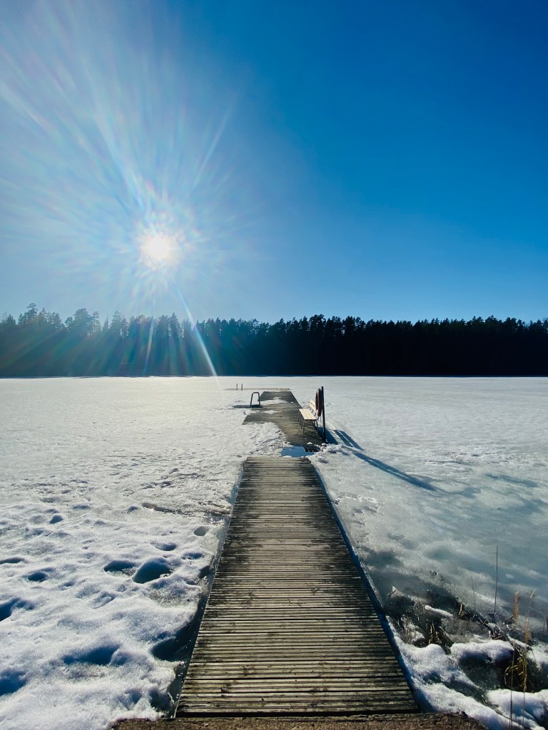 Ensimmäisellä kerralla hivuttauduin hiljaa ja huokaillen hyiseen veteen. Hengitys salpaantui ja lihakset jännittyivät. Olin kuitenkin tehnyt päätöksen, että sinne mennään. Ja niin menin. Ilta-aurinko paistoi laiturin osoittamasta suunnasta. Siitä huokui aavistus lämpöä.