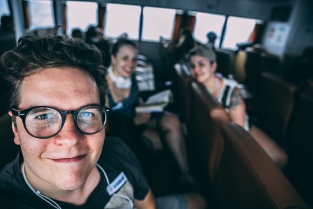 Pian delfiilinien jälkeen rysähti. Ikkunaan, ensimmäinen maistiainen indonesialaisista merimetkuista, eli kunnon aalto. Ja ensimmäinen kunnon jytky, kun laivan nokka iskeytyi aallon harjalta toisen pohjaan.