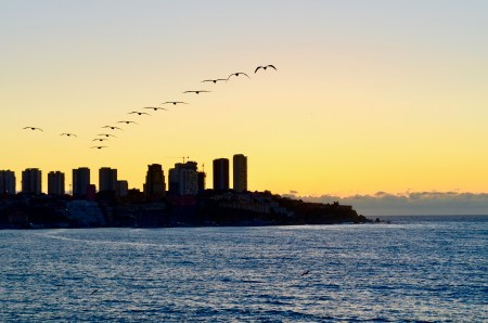 Olimme matkalla Concónin kylästä kohti Valparaíson keskustaa. Tie myötäilee Tyynenmeren piirtämää rantaviivaa noin puolen tunnin linja-autokyydin verran. Avoimet ikkunat ja yllättäen myös ovet pitivät huolen siitä että meri-ilma pääsi viilentämään rystyset valkoisena kaiteissa roikkuvia hikimärkiä turisteja.