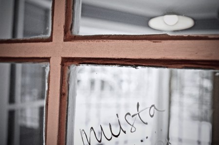 Vastapäisen kerrostalon parveekkeella on nainen. Ehkä kuusissakymmenissä. Violetissa verryttelypuvussa. Lukee lehteä. Kun ilmestyn ikkunaan, hän ryhtyy tuijottamaan minua. Mietin, että katsookohan hän minua miettien, että katsonkohan minä häntä.